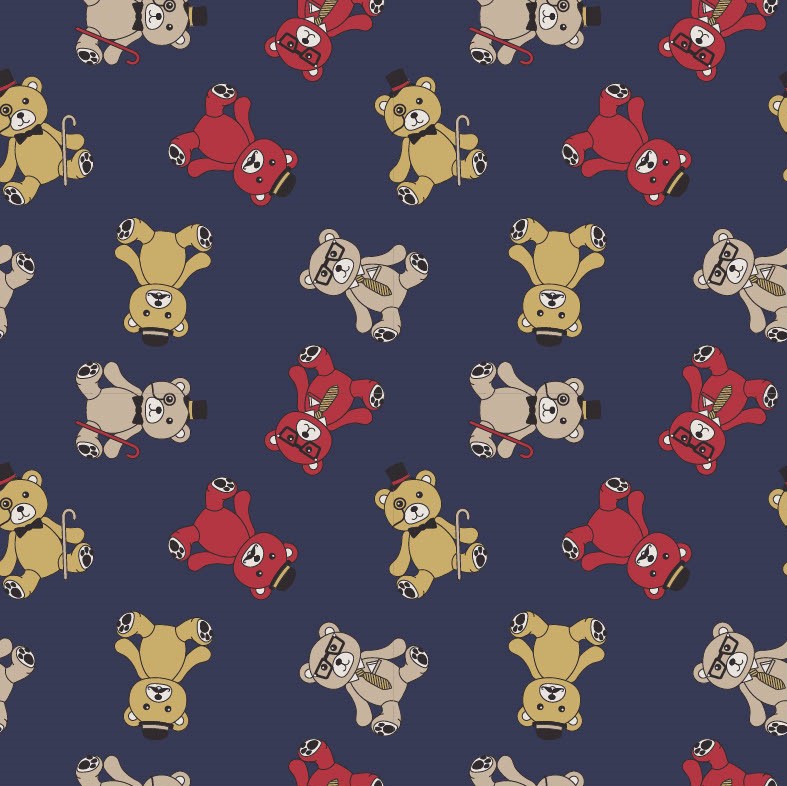 Bertie Bear- Navy ® 112cm Wide. Sold By The 25m Roll Or 12.5m Half Roll.